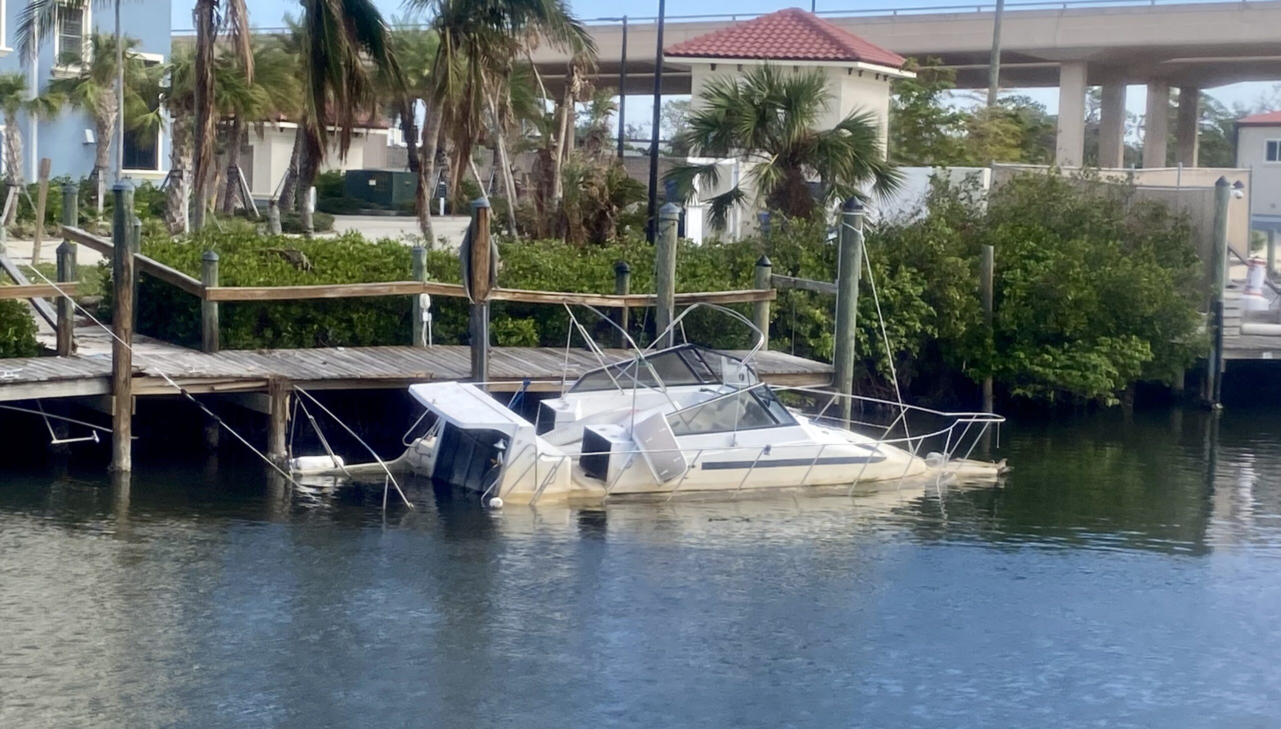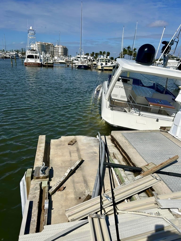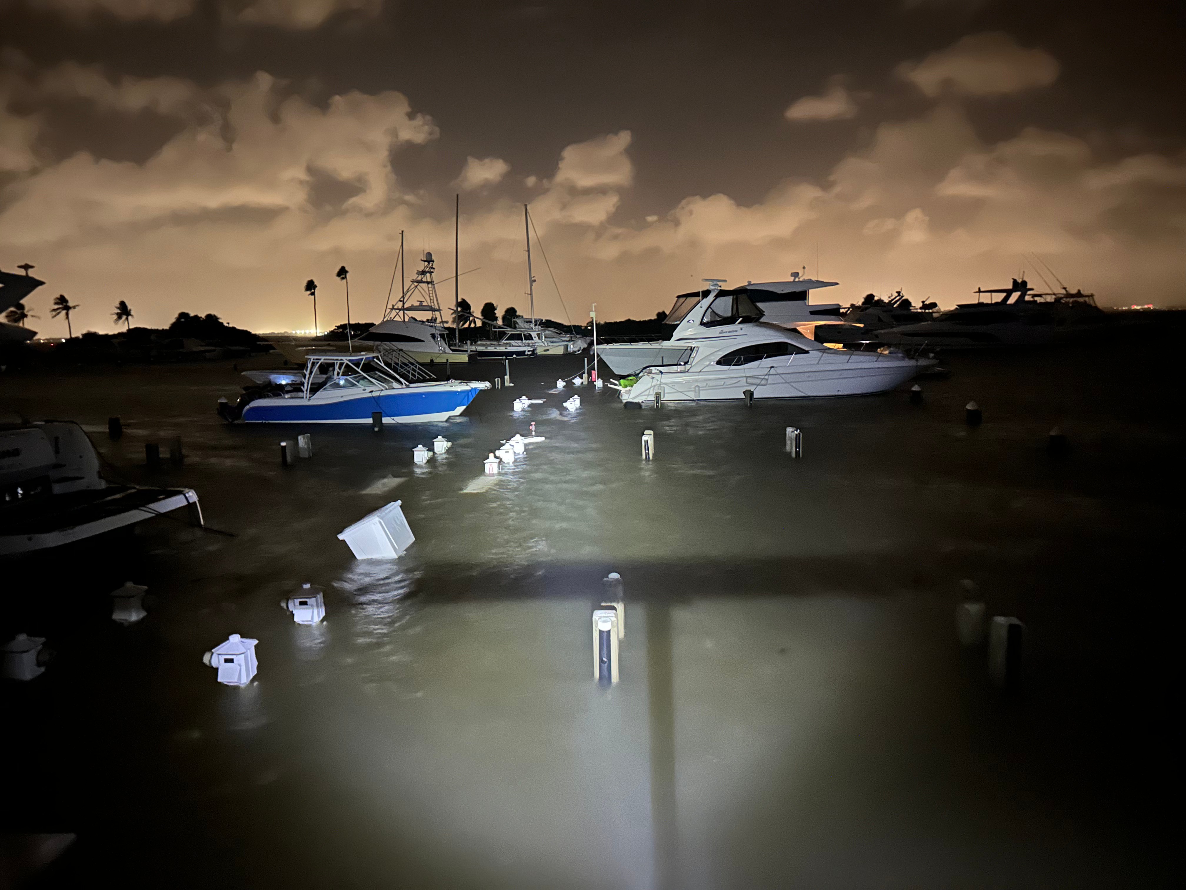 We have attached a photo from E dock (we were on E dock the 2021-22 and 22-23 seasons) taken at 3:49 PM, Friday, September 27. The storm surge left Longboat Key island with substantial damage but as of today 90% of residences and businesses have had electricity restored. Water has been restored but there is a boil-water advisory until testing confirms the water safe.