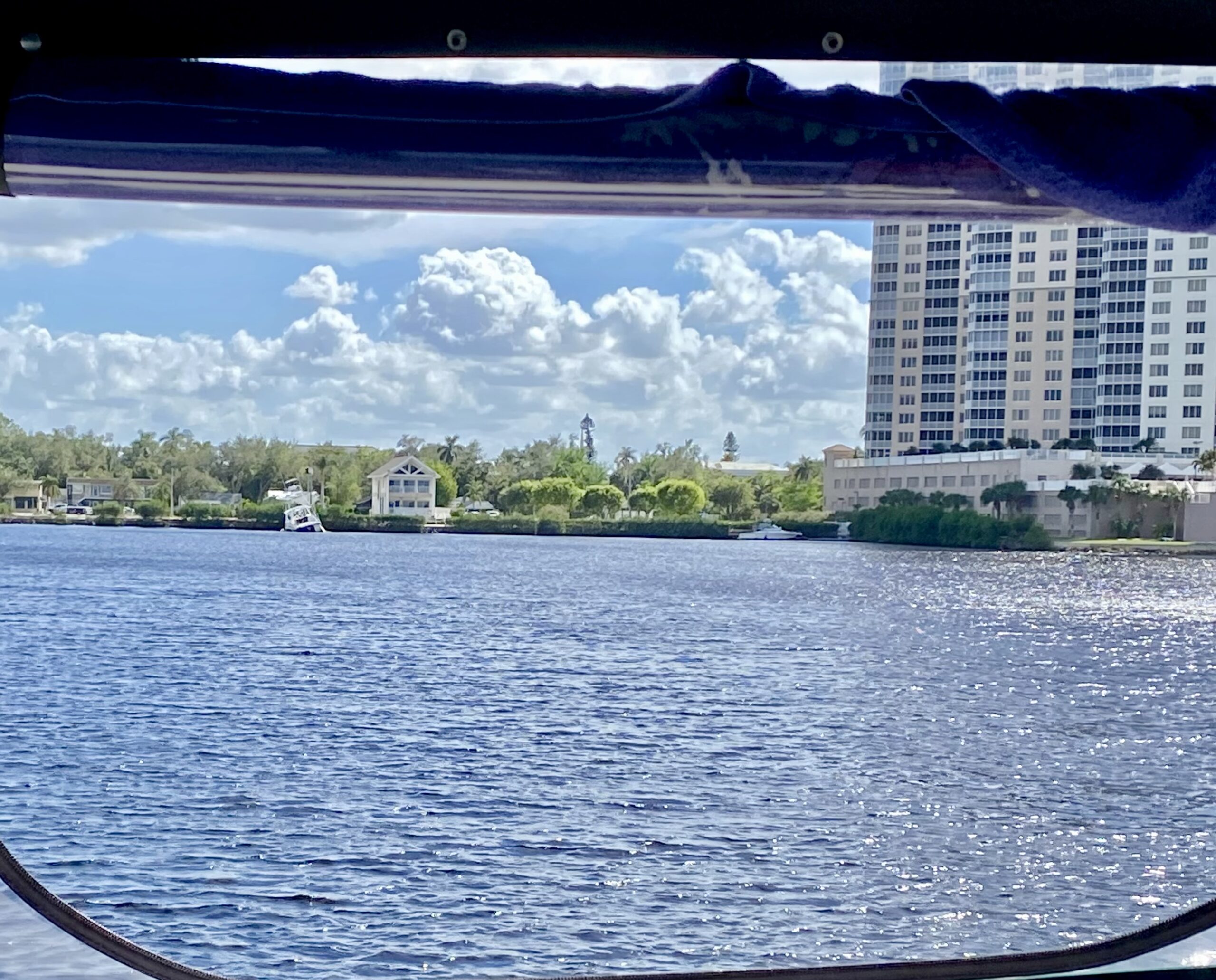 The next morning, we were up and out early for a grocery store run and then on to River Forest Yachting Center to board 2thFISH. We arrived to find the boat in the water but still in the throes of installing an engine synchronizer – a job that was supposed to be finished. So instead of departing the next day (November 7) we departed Friday, November 8 for Gulf Harbour Marina in Fort Myers. As it was windy on Thursday, the delay didn’t bother us a bit.