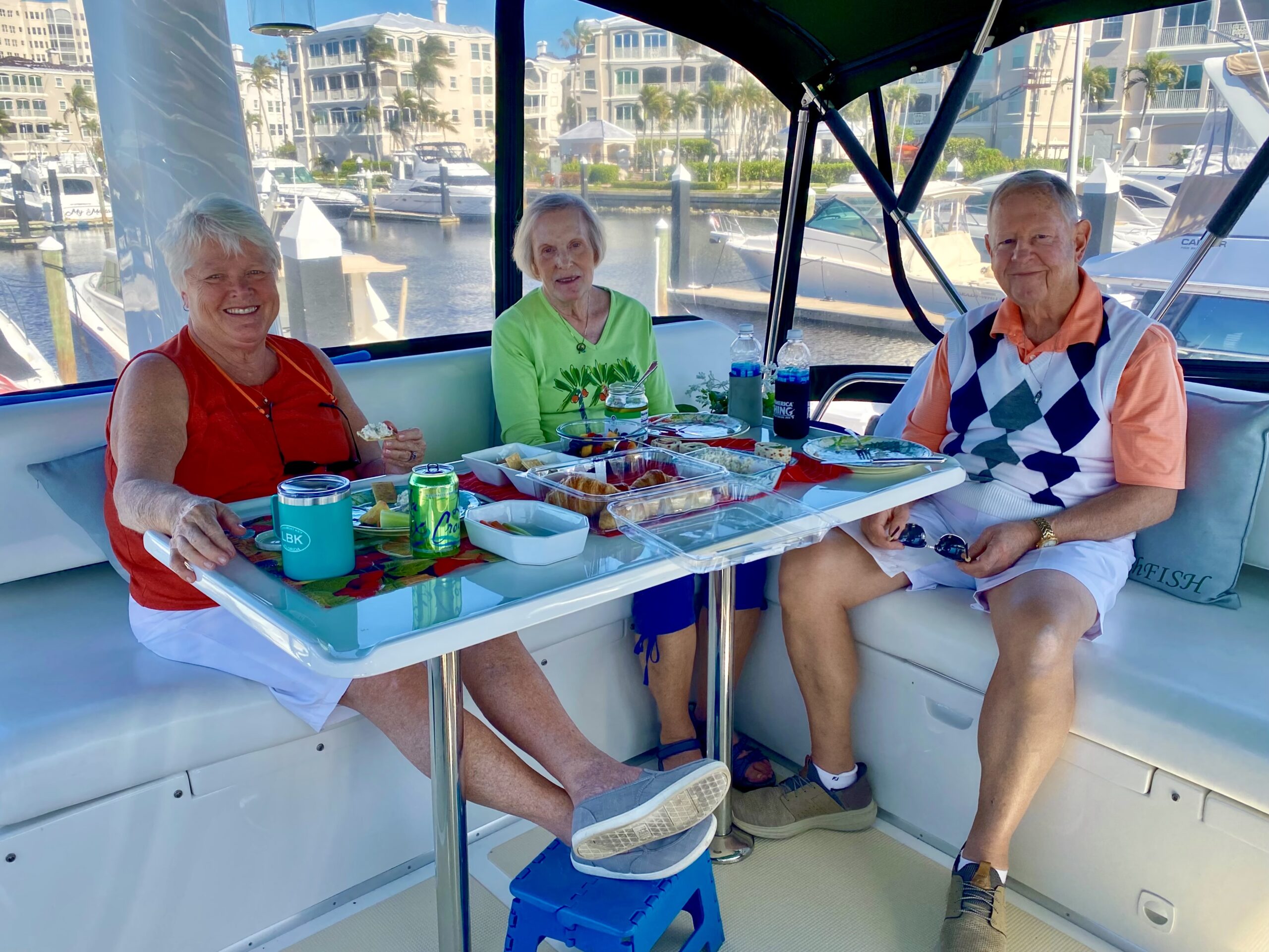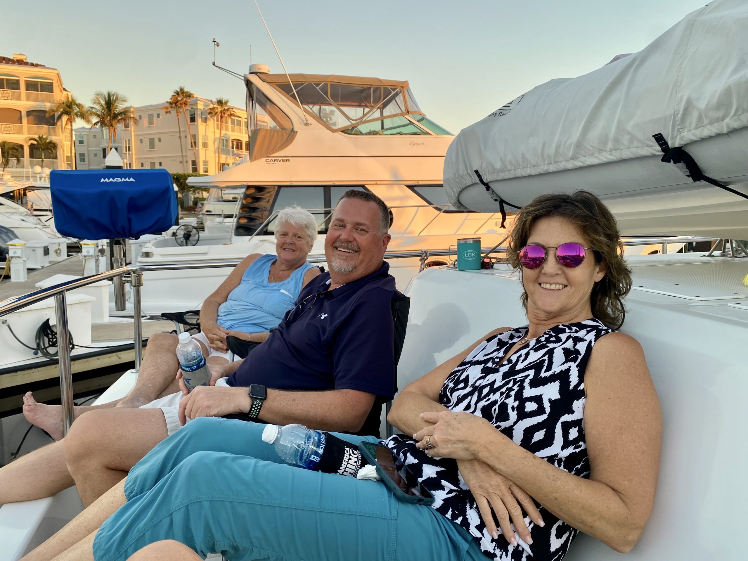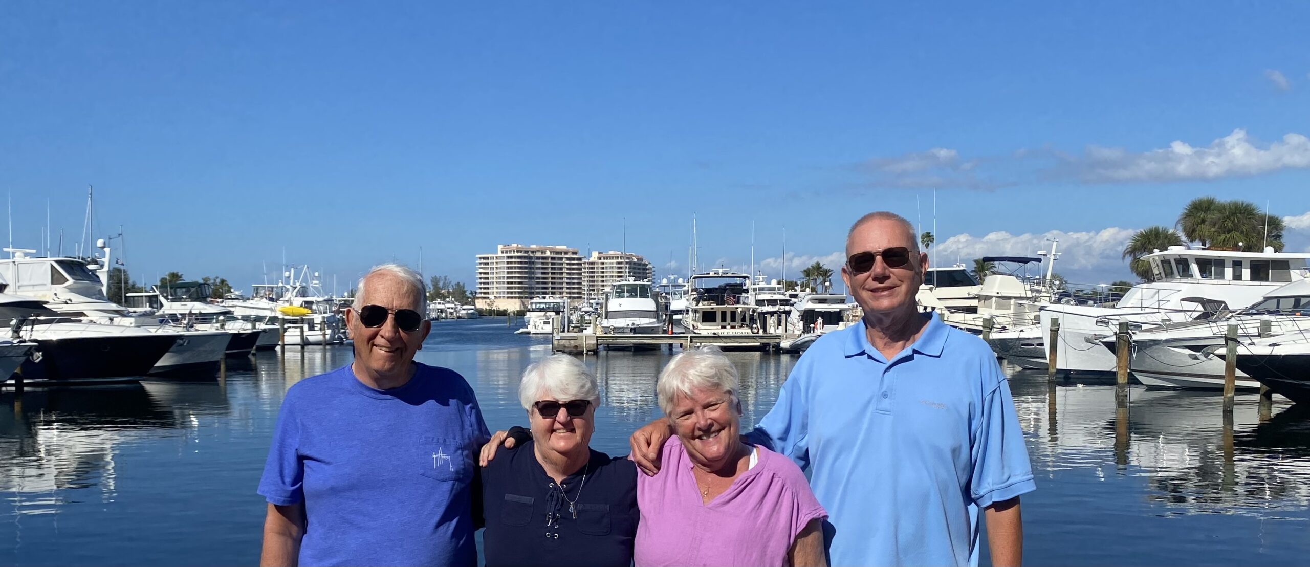 Longboat Key, FL. December 1, 2024. We arrived at Longboat Key Club Moorings yesterday (Wednesday, November 30), but more about that later. We enjoyed our time at Gulf Harbour Marina in Fort Myers and will really miss the floating docks. As noted in the last post, our friends from Myrtle Beach and neighbors, Steve and Glenna were in Ft. Myers for Thanksgiving week and spent an afternoon with us on 2thFISH. The next day we spent Thanksgiving Day with them and Steve’s parents for a great Thanksgiving meal. It was good to be with friends on Thanksgiving and thanks to them for sharing their day with us.