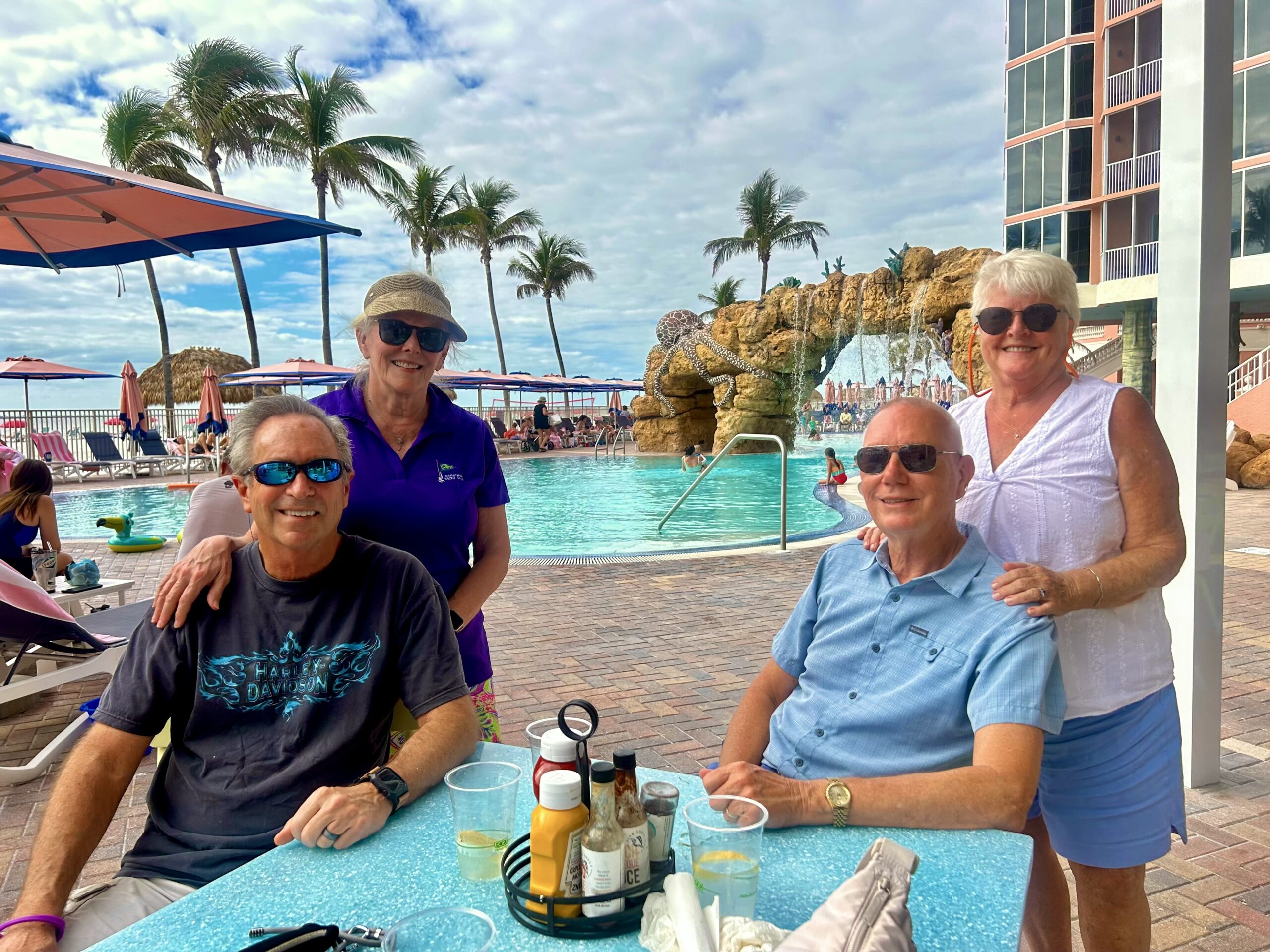 Longboat Key, FL. March 10, 2025. We have covered a fair amount of ground since the last post. We enjoyed an evening with former boater friend Bunnie and at the Sarasota home of other former boater friends Bryan and Judy. Bryan and Judy are from Scotland, so we always enjoy our periodic dose of Scottish brogue when we visit. Judy grew up in Aberlour, the home of our favorite Scotch. Sue had her retinologist appointment in Stuart and on that trip we visited Ed and Beth, our boater friends from Newfoundland. We also got to catch up with Geoff and Jean, friends from Gordon’s American Sportfishing Association days, who spend all the cold months in Florida instead of Minnesota.