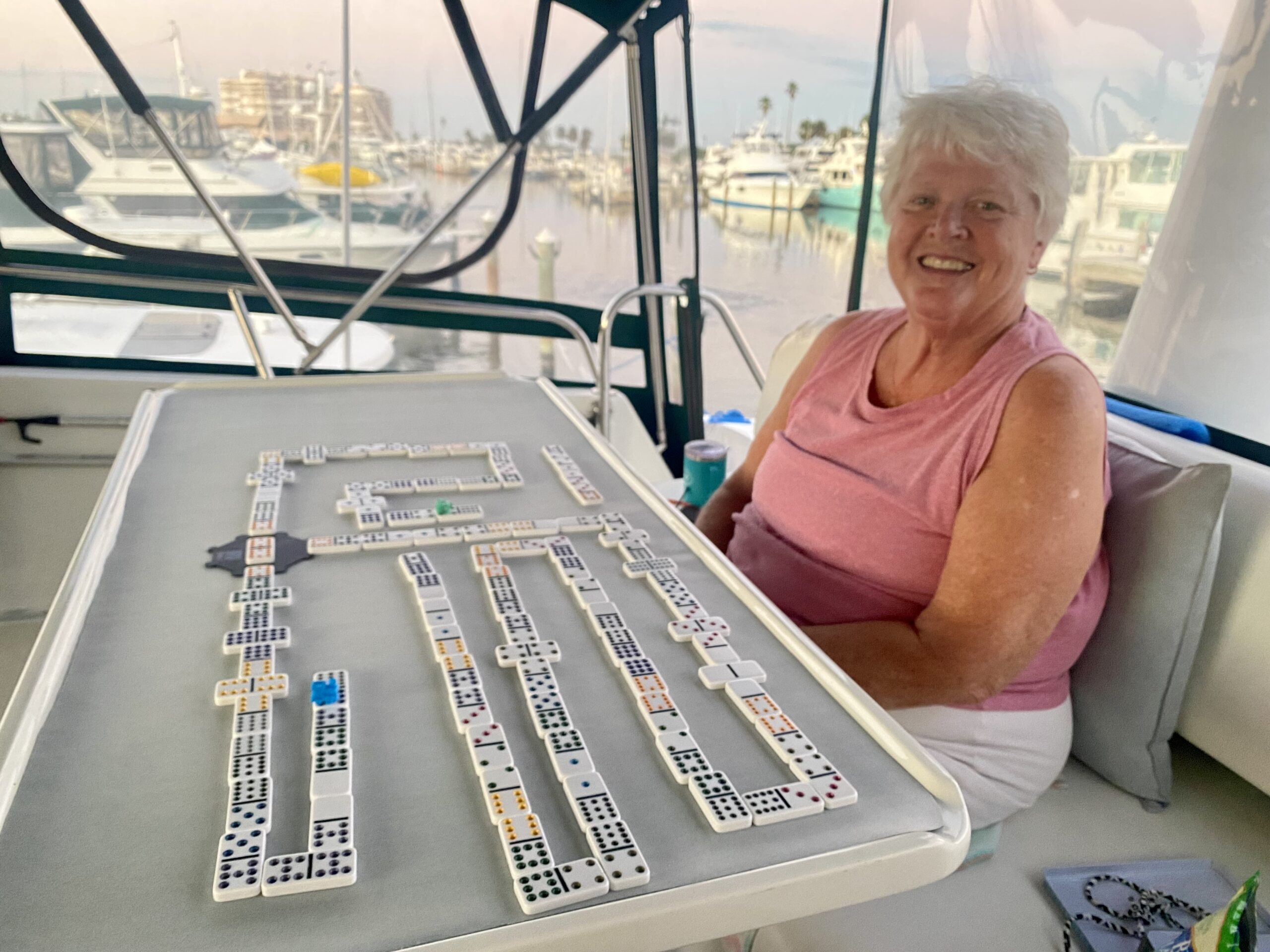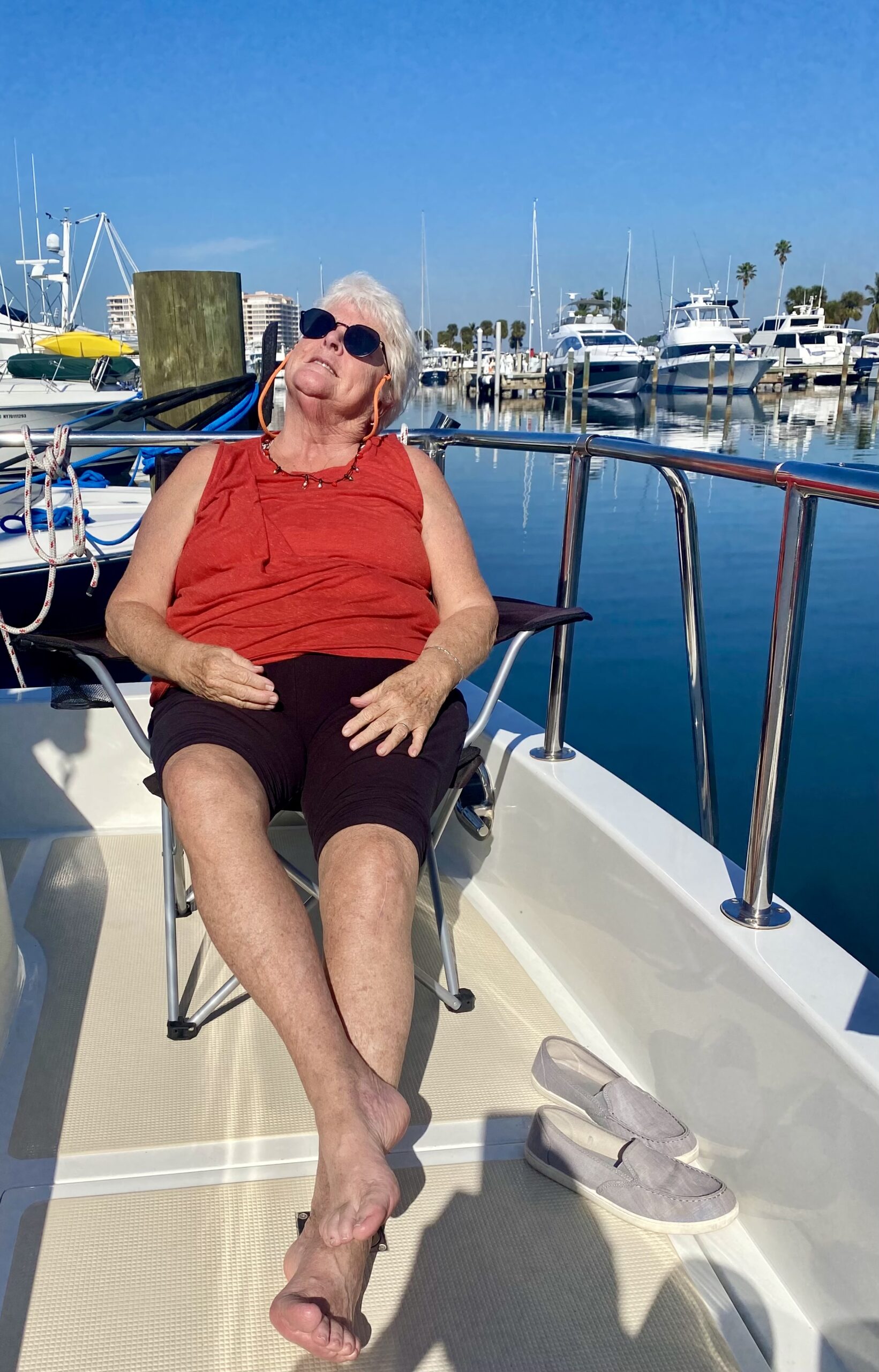 Longboat Key, FL. December 7, 2024. We moved 2thFISH from C-dock to I-dock on Thursday morning. New cleats and proper protective materials were fitted onto I-9 for our arrival. And, as a bonus the screaming winds dropped to almost no wind. It’s great to be back onto I-dock where many of our boat friends are. Right now, there is only one other couple, Dave and Betsy on Frydaze, staying on their boat but that will grow by the first of January to at least six more live-aboard couples. Last evening we joined Dave and Betsy on the dock with three other couples from adjoining docks for docktails. Despite being around 68 degrees and a stiff breeze we sat out for almost two and a half hours.