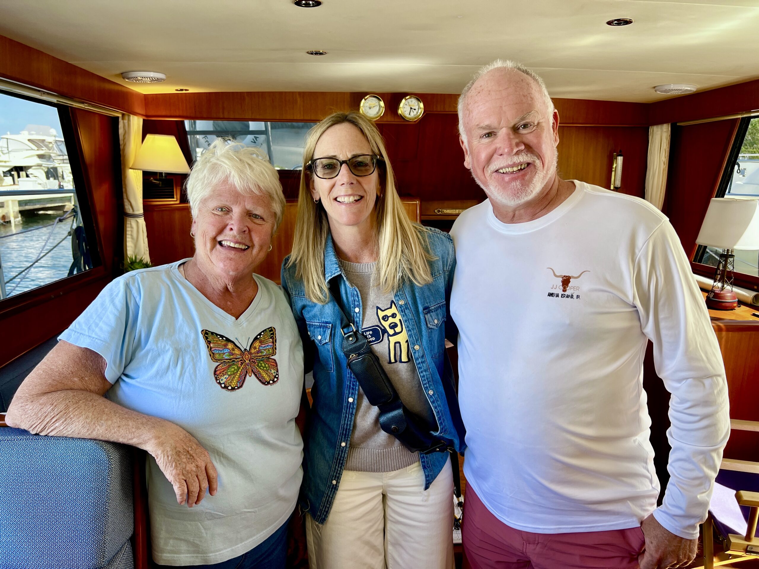 Longboat Key, FL. January 19, 2025. Well, it has been a while since our last post. We chalk this up to the weather. When the weather is nice – warm and not high winds – there is lots to do on the water and more to share. Not so much when it is consistently cool and windy, foggy and you spend lots of time indoors. We know this isn’t much solace for those of you in the north, but everything is a matter of perspective. The water temperature here is 56 degrees and that is the lowest we have seen, as in the past it has been in the high 60s and low 70s this time of year. That has made for a lot of foggy morning and sometimes all day or reoccurring fog. Day time temps have occasionally reached 70 in the last month with lows in the mid-40s. The weather caused Gordon’s sister Abby and husband Bill to change their planned visit to a time with better weather. Enough about the weather