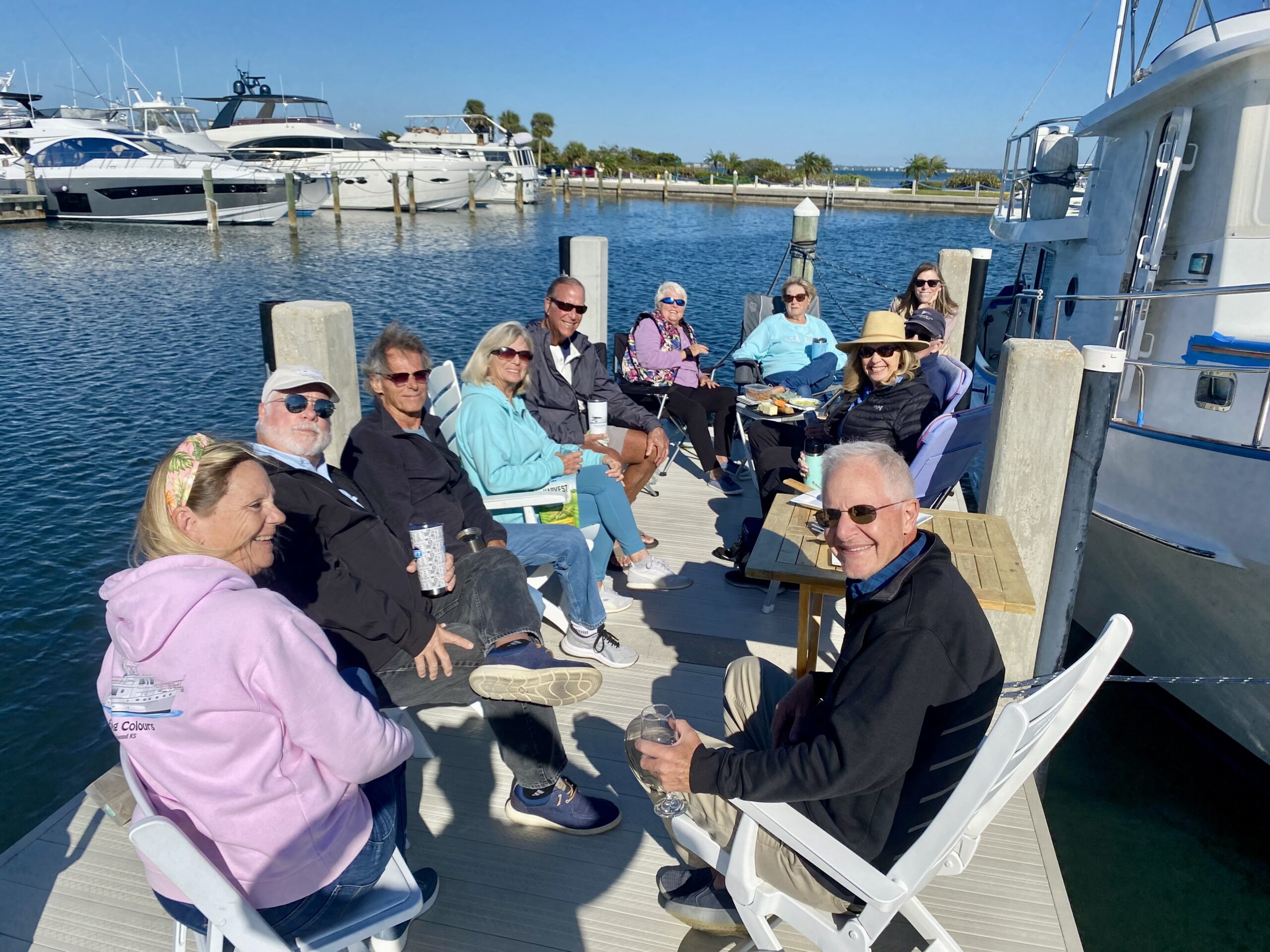 Longboat Key, FL. March 30, 2025. We are headed into the home stretch of the 2024-25 season and it’s hard to believe. As we look back on this year’s, and last year’s, winter season in FL, it has been rather different than previous seasons. The weather has been cooler and windier, and the hurricanes got this season off to an uncertain start while the impacts of Hurricane Ian in 2022 and Tropical Storm Nicole are still felt in the marina and boating world on the Gulf Coast of Florida. Home stretch or not, we have been rather busy with a fair amount of company and general boating social life. And the marina is starting to have empty slips as boats depart for the Bahamas. Earlier Tom and Julie (Sapphire) left and this past week Tom and Lyn (Sea Dancer), Alex and Linda (Lucky E’nuff) and Doug and Judi (Mobile Home) departed for the Islands. We are envious of them, but we continue to enjoy boat life on the Gulf Coast.